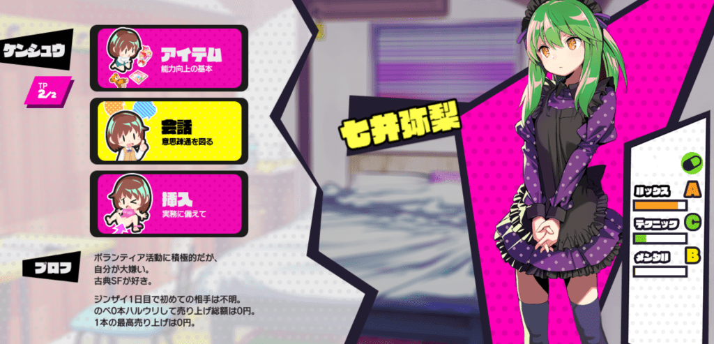 接下来可以选择的是,卖春的阶段或者是打架的阶段。今天没法打架,只能进行卖的工作。