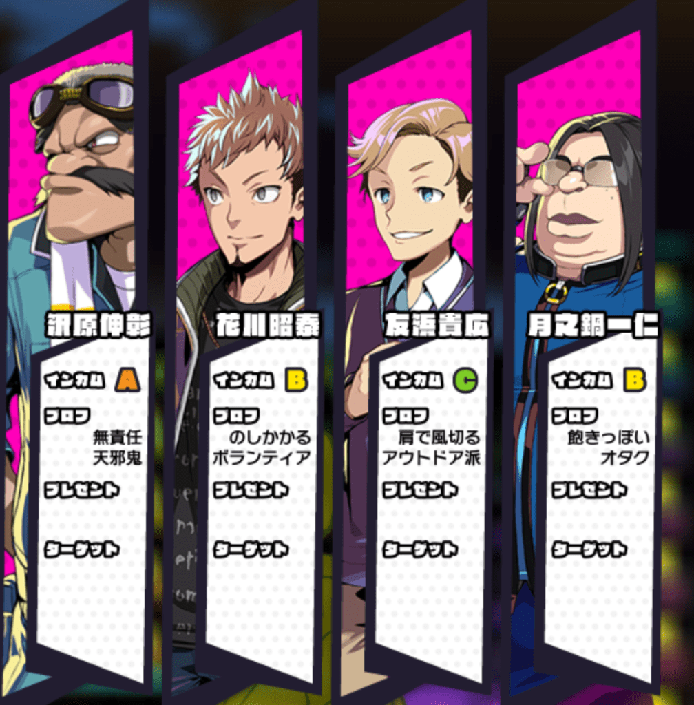 ABC分别代表了客人给的收入。之后是客人的个性,影响和我们姑娘的相性,以及可能产生的后果。最后是礼物。第一天的客人应该不会给礼物。是空的。但是之后的话我们姑娘应该能拿到客人的物品。