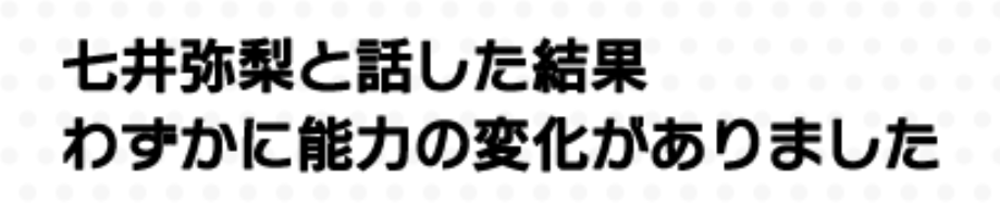 第二天主角到学校遇到粉毛奇拉奇拉,粉毛吐槽说主角昨天他们一起{喝酒开小会}的事情,说他时候怎么和往常不同,那么踏踏实实的一个劲吃饭啊。主角说,还不是因为消耗太多了啊