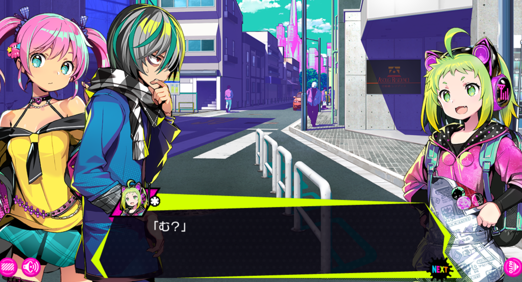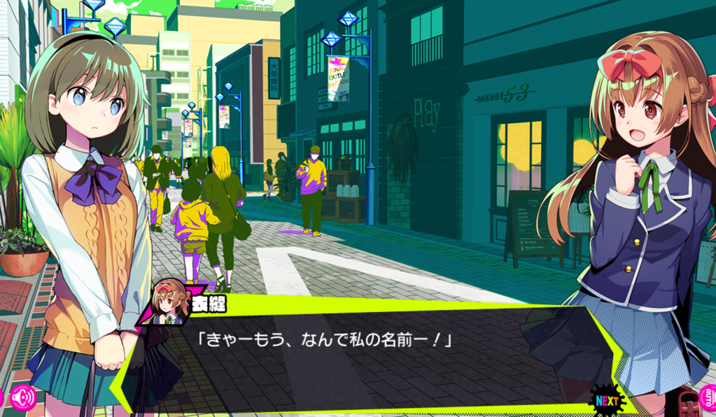 主角和粉毛上学的路上碰到了电波妹,字面的意思上追寻电波的电波妹,粉毛的同学,但是平时根本不上课。不知道之后有什么剧情。此外之前还触发了叫衣缝的妹子的剧情。这个可能也是推图才能得到吧,暂时还不太清楚。