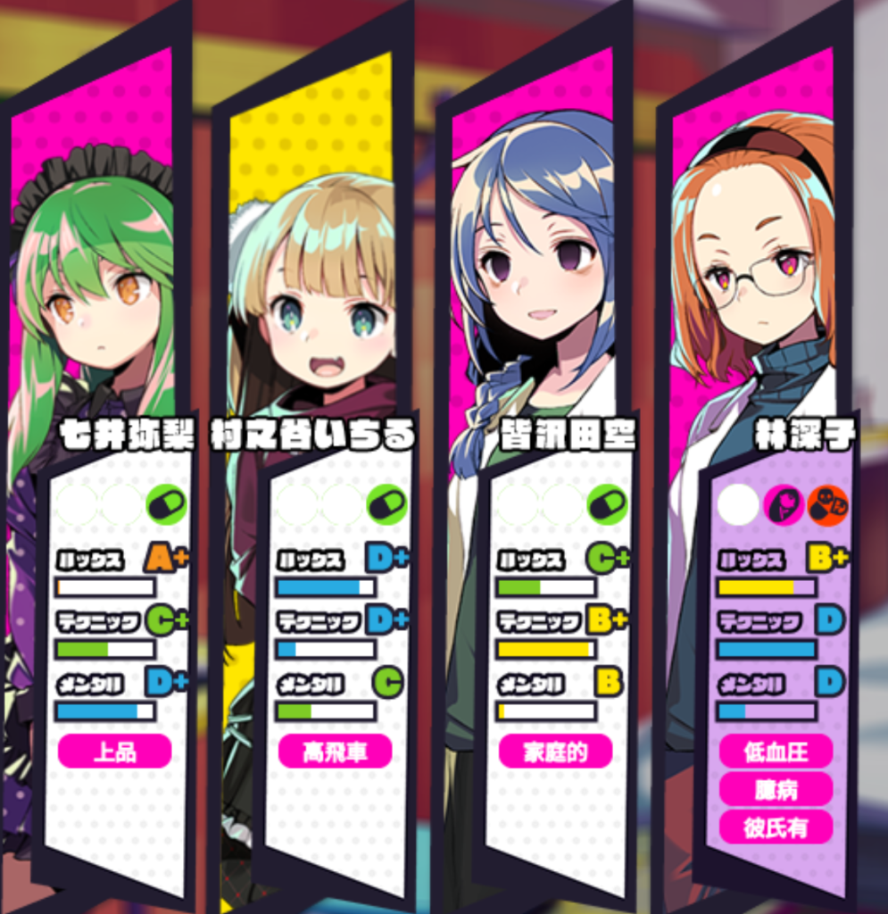 但是也确认到了一些新的东西,基本上,没有意外的话,颜值(仪容)决定客人的选择优先级,技术决定客人反馈和赚的钱。至于其他的属性虽然目前还不清楚,应该是要根据妹子的性格说明投客人所好吧。