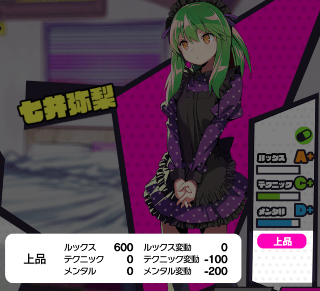 图上七井就获得了上品属性这是一个相对正面的属性,大幅长颜值,但是降低心理。