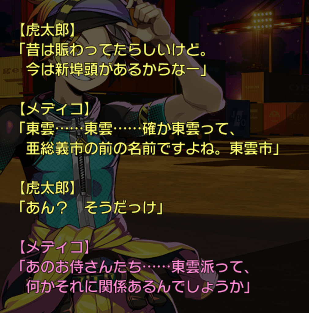 今天去攻略东云码头。一上来就是内幕信息。原来亚总义市的旧名字就是东云市。