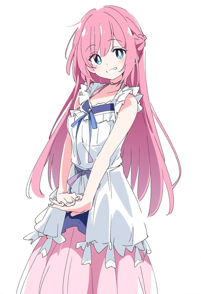 那是一位少女。她的头发淡粉,容貌清纯而美丽。表情无比凛然。