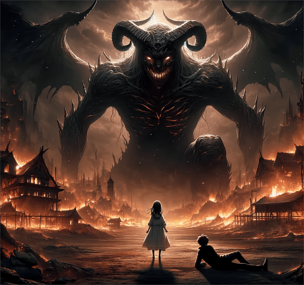 那是村民们从未见识过的存在。但从传说中、从吟游诗人的讲述中他们能猜想到的,符合如此形状的存在就只有恶魔了。