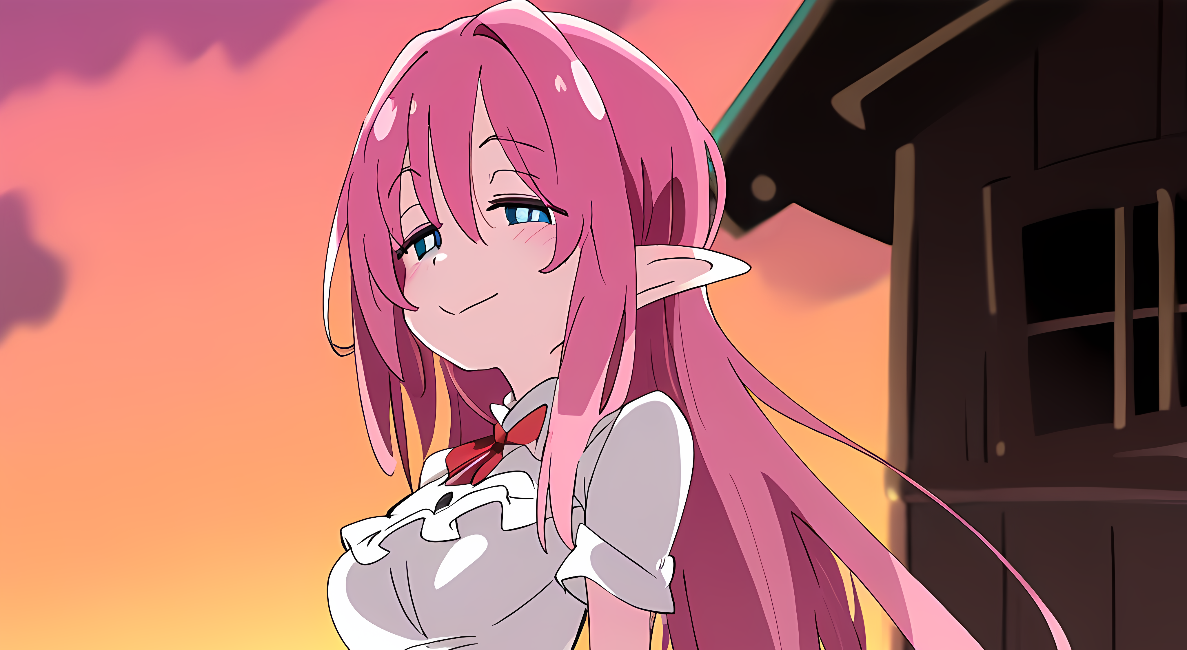 闭目微笑,抱着小雷克的粉发少女。在怀中静静地呼吸着,为自己的心意传达到了憧憬的人心中而喜悦释怀的男孩。这样一副画卷,在夕阳下是如此美好。